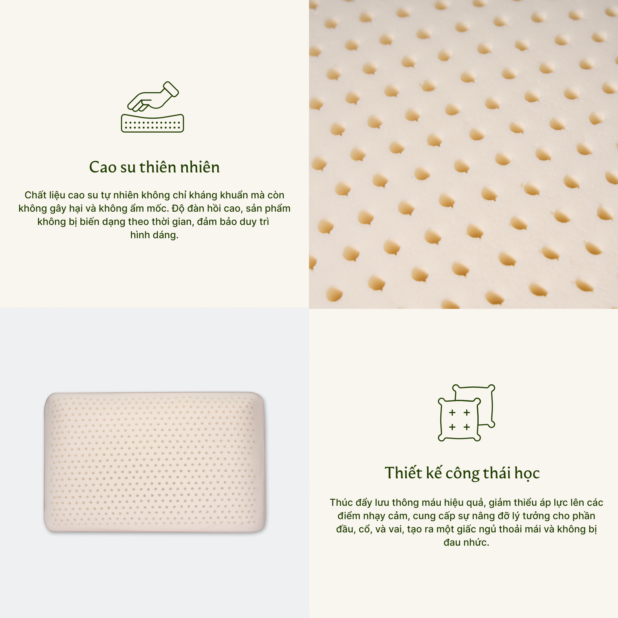 | Chất liệu | 100% mủ cao su tự nhiên |