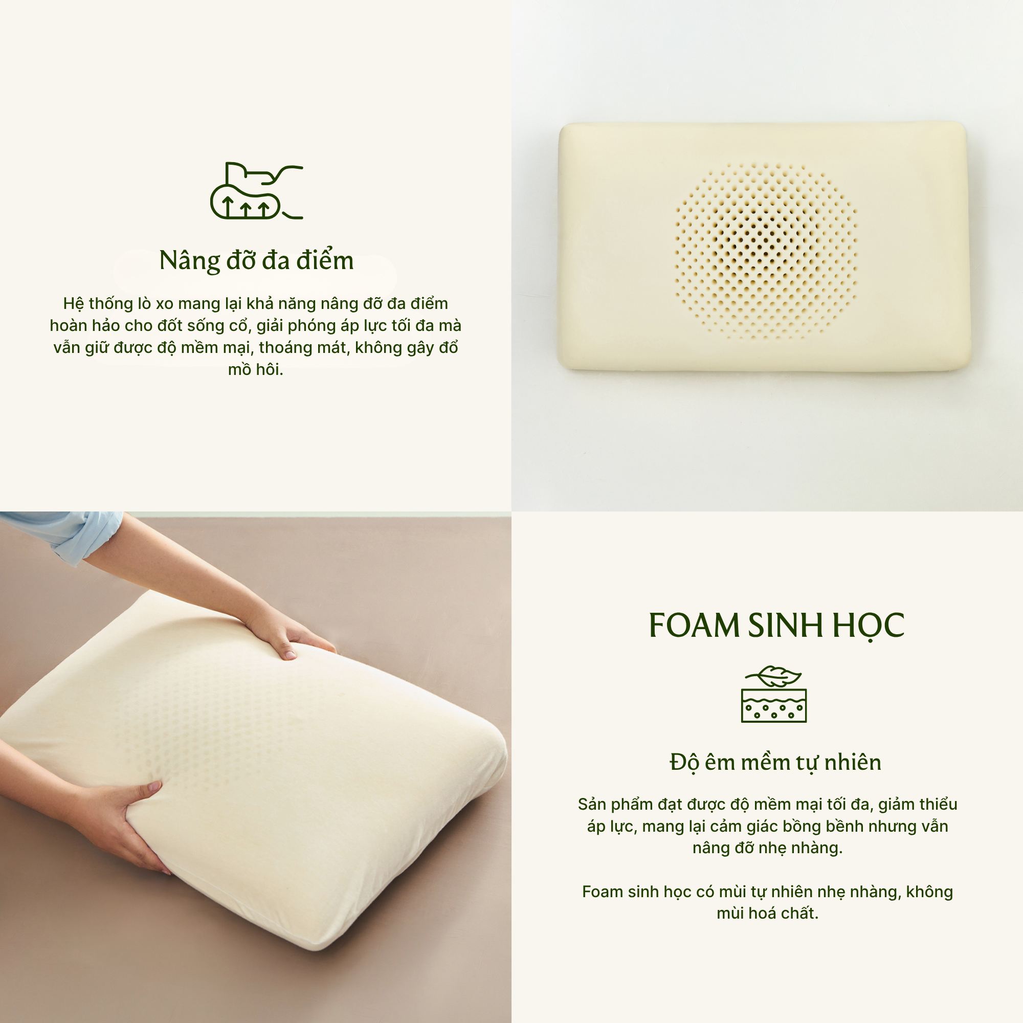 Lớp foam sinh học bao ngoài mềm mại, nâng đỡ nhẹ nhàng, giảm áp lực lên đốt sống cổ
