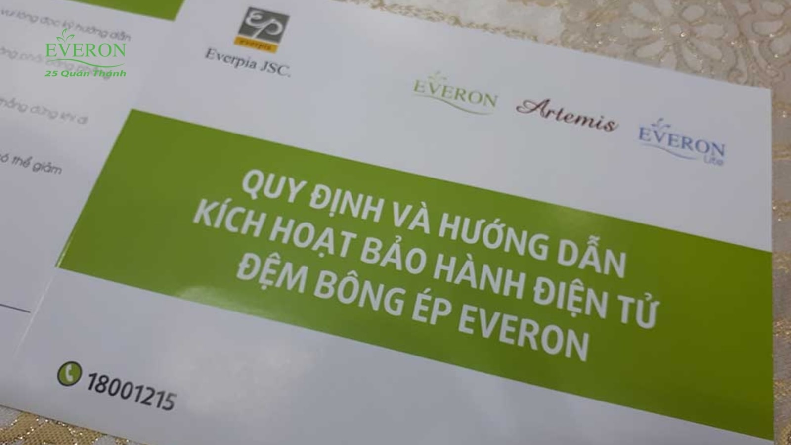 Dấu đỏ chứng nhận chất lượng từ Everon là một trong những đặc điểm dễ nhận biết nhất. Dấu này có màu đỏ tươi, được in bằng mực chuyên dụng không phai màu theo thời gian. Vị trí của dấu đỏ thường nằm ở góc trên bên phải của lõi đệm, với kích thước chuẩn 3x2 cm.